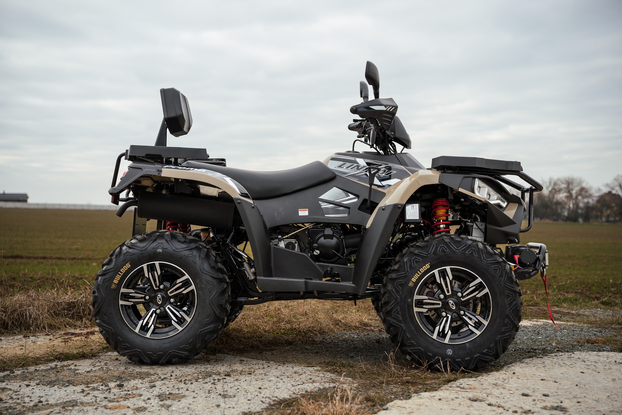 I přes svoji vynikající cenu nabízí Linhai 420 Promax již v základu skutečně bohatou výbavu. Ta zahrnuje kromě LED osvětlení například i atraktivní ALU kola, elektrický naviják s tažnou silou 3000lbs a dálkovým ovládáním nebo tažné zařízení. Nechybí masivní nárazníky vpředu a vzadu, moderní kompozitní nosiče, kryty rukou nebo praktická akustická signalizace blikačů.