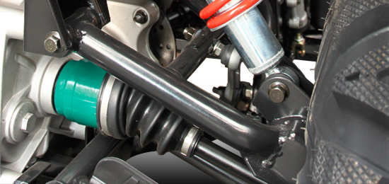 Široký, lehce ovladatelný podvozek s vysokými zdvihy pérování a nízkým těžištěm zajišťuje vysokou průchodnost v terénu a vynikající stabilitu při jízdě. Všechna kola jsou nezávisle zavěšena, k vysoké obratnosti přispívá i velmi malý poloměr otáčení.