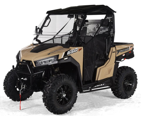 Linhai UTV 650 T-BOSS EPS je vyhlášený dříč. Moderní design Promax s LED Matrix světlomety a sportovním akcentem zaujme na první pohled. Díky posilovači řízení je řízení příjemné a snadné ne jenom při jízdě v rámci pracovních činností. Zcela nový motor je silnější, živější a úspornější. Nový Linhai 650 T-BOSS EPS je ideální pomocník pro práce v zemědělství, v lesnictví, ale také na stavbě, v parcích, zahradnictvích, sportovních areálech, při zásobování horských hotelů apod. Při své váze 580 kg vyniká tento dříč tažnou silou až 1349 kg potřebnou pro různorodé pracovní činnosti spočívající zejména v tažení nebo tlačení různých přípojných doplňkových zařízení, náčiní apod. určených pro tyto pracovní činnosti.