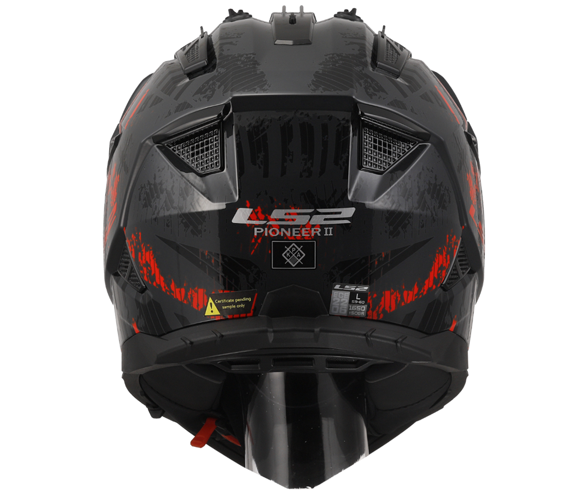 Moderní helma MX702 Pioneer II pro enduro, adventure, supermoto a čtyřkolky nabízí vysokou variabilitu, široké možnosti využití a atraktivní design. Vyvinutá ve spolupráci s jezdci mistrovství světa MX, enduro a supermoto, helma Pioneer II MX702 těží z dlouholetých úspěchů značky LS2 ve vrcholných soutěžích a dálkových rallye. Vybavená plexištítem, slunečním štítkem a navíc i integrovanou sluneční clonou umožňuje širokou variabilitu v širokém spektru podmínek, lze jí používat s plexištítem nebo MX brýlemi. Nová přepracovaná skořepina kompatibilní s moderními chrániči krční páteře je vyrobena z inovativního patentovaného materiálu Kinetic Polymer Alloy (KPA). Přepracované účinnější větrání a příjemný antialergický kompletně vyjímatelný a pratelný interiér. Emergency Release System s rychle vyjímatelnými lícnicemi umožňuje snadné sejmutí helmy v případě nouze. Rychlé zapínání ocelovou rychlosponou.