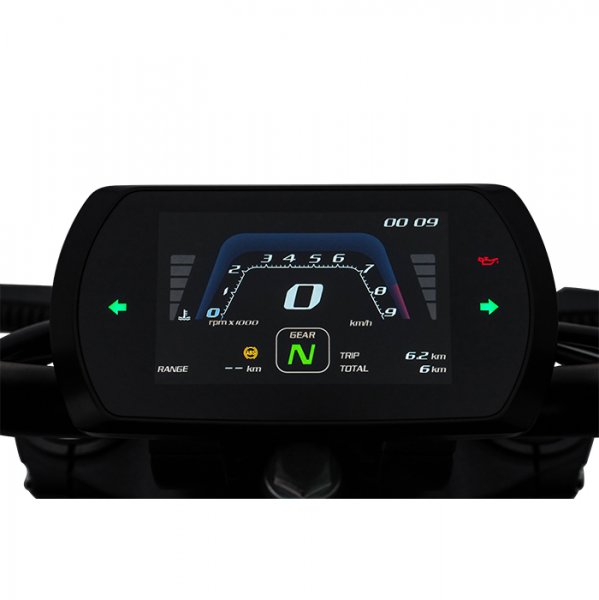Plně barevný přístrojový panel zobrazuje všechny důležité jízdní metriky na první pohled a má další možnosti přizpůsobení. Uživatelsky přívětivý je i kokpit s pohodlnými širokými řídítky a kulatými zrcátky.