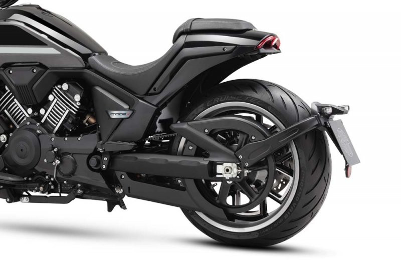 Nízko umístěné dvojité tlumiče výfuku dotvářejí charakteristický vzhled cruiseru C 1002V.