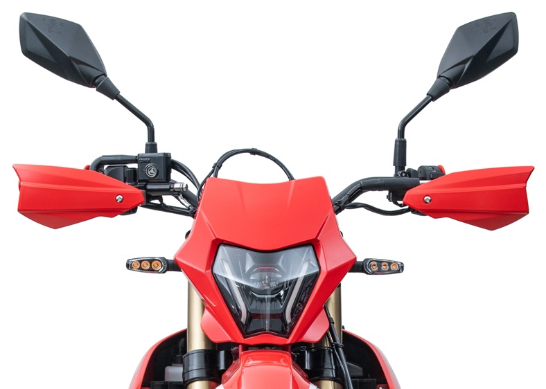 COV 125 má stejně jako všechny naše modely příjemný moderní a neokoukaný design. Design motardů (supermoto) se vyznačuje lehkostí, hbitostí a sportovním, minimalistickým vzhledem odvozeným z terénních motocyklů, ale přizpůsobeným pro silniční provoz a zábavnou jízdu, což je znát na každém detailu COV 125 na první pohled. Co Vás mile překvapí je hezké zpracování a krásné detaily, které dělají z COV 125 opravdu hodnotný stroj, na který budete hrdí. Jmenujme například krásný hluboký červený lak, parádní ergonomické prošívané ploché sedadlo c červeným potahem. Ladně působí též výfuk, který skvěle doplňuje sportovní charakter tohoto motardu. Nakonec zmíníme krásnou, ostře řezanou masku s LED světlometem a blinkry, a nebo propracované koncové LED světlo - to vše je sériový COV 125!