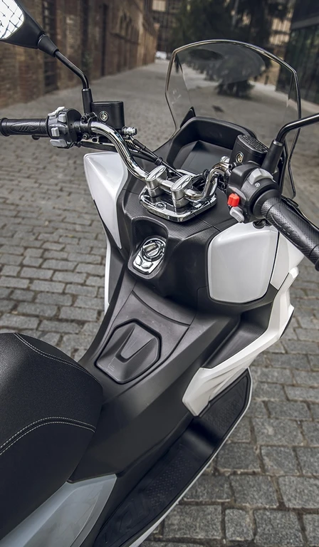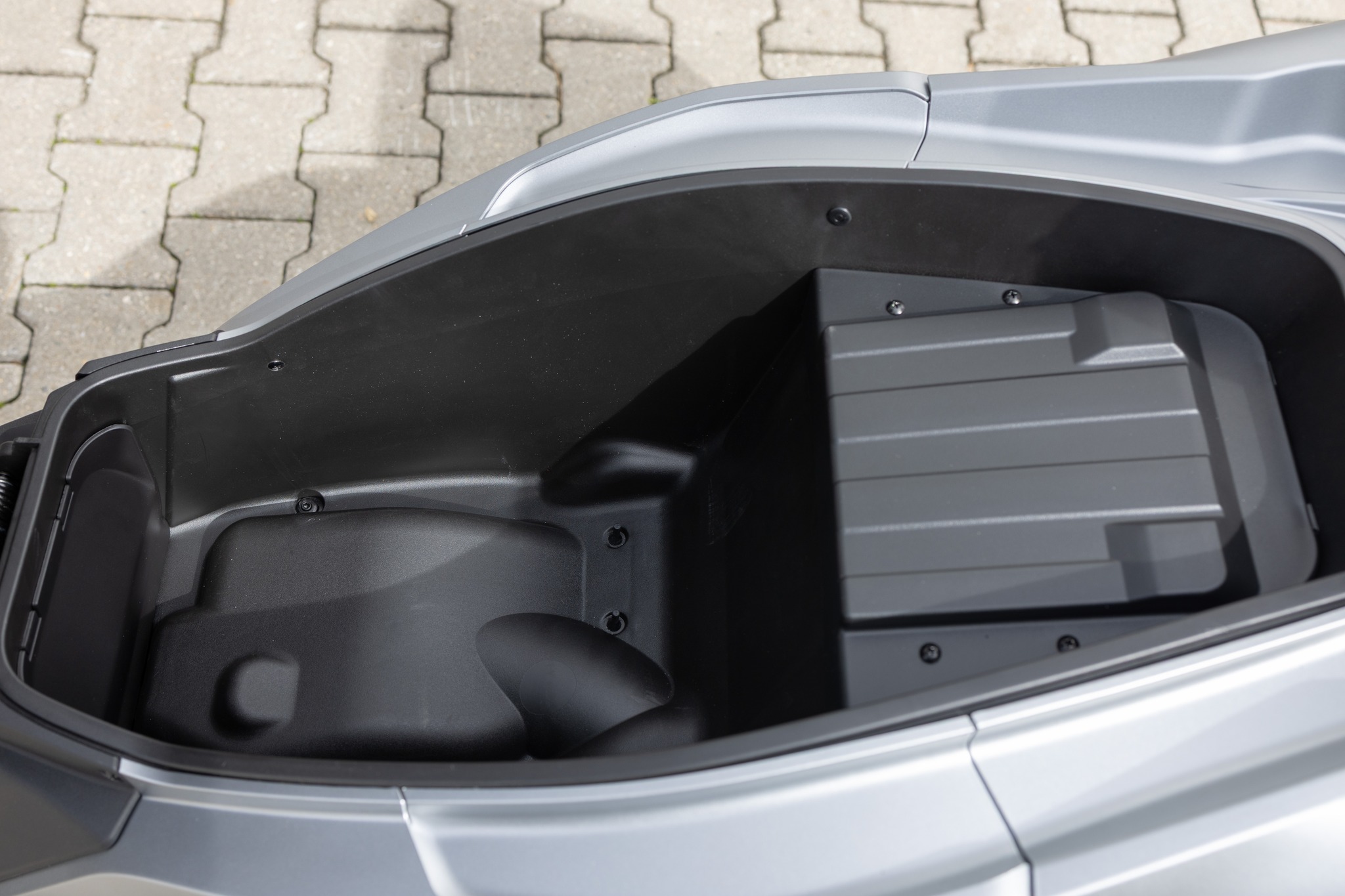 Pod řídítky MTX 125 jsou dvě odkládací schránky, které Vás mile překvapí svou velikostí. Do každé z nich se pohodlně vejde i PET láhev s pitím, nebo jakékoliv další osobní věci jezdce a spolujezdce. Nemusíte tedy převážet Vaše drobné věci, peněženky a nebo doklady po kapsách. V levé schránce jsou chytře umístěné napájecí zásuvky USB-A a USB-C.