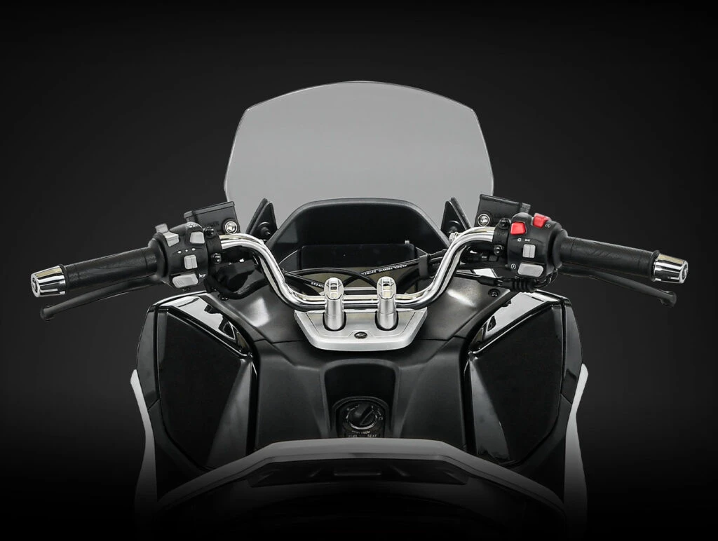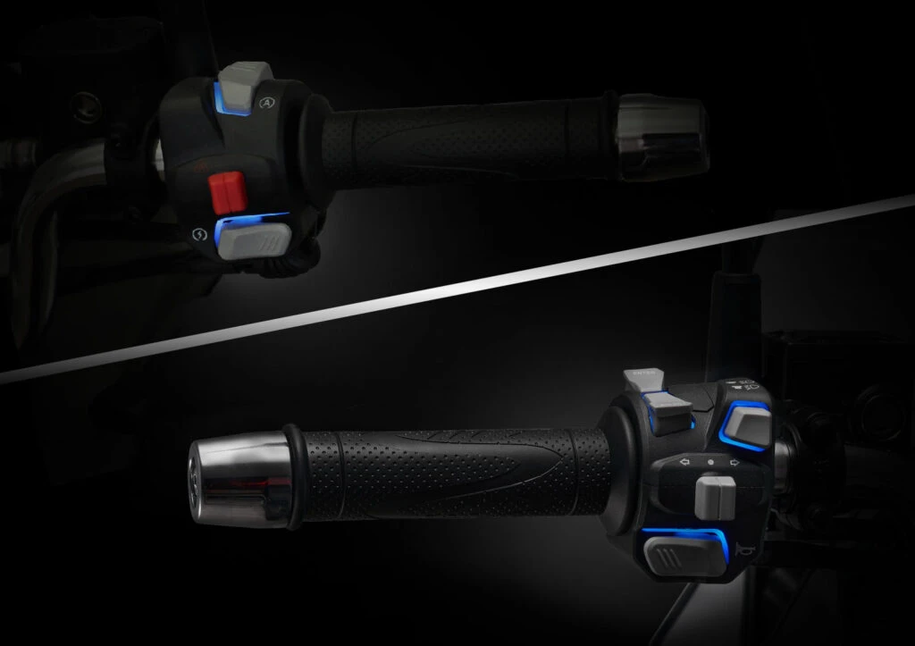 MTX 125 má na rozdíl od většiny konkurence i praktické podsvícené ovladače na levém i pravém řídítku, což je dobré pro začátečníky, ale i pro zkušené jezdce. Pomocí těchto osvětlených ovladačů lze snadno ovládat všechny funkce skútru (včetně přístrojového panelu) jednoduše pouhým stisknutím prstu. Máte tak plnou kontrolu nad svým strojem ve dne, ale i při jízdě v temné noci