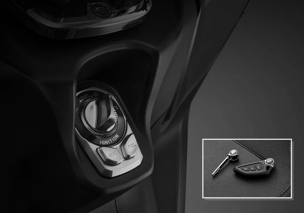 MTX 125 se vyznačuje bezklíčovou technologií s možností odemykání sedla a centrální jednotky na dálku, přičemž nechybí ani běžný klíč jako bezpečnostní prvek pro případ vybití baterie vysílače. Přesněji řečeno, klíč může komunikovat se snímačem, i když byla baterie zcela vyjmuta ze skútru, čímž je zajištěno, že MTX 125 nezůstane zamčený a nepojízdný.