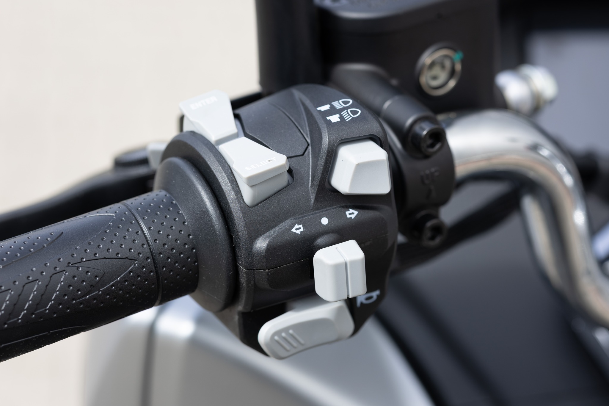 V levé příruční schránce pod řídítky je integrována zdvojená zásuvka USB-A a USB-C. Můžete skrz ně nabíjet například mobilní telefon, nebo si též zapojit externí navigaci. USB zásuvky mají samozřejmě voděodolnou gumovou krytku.
