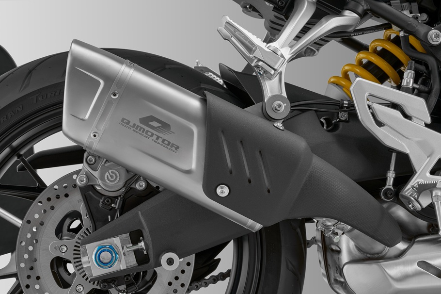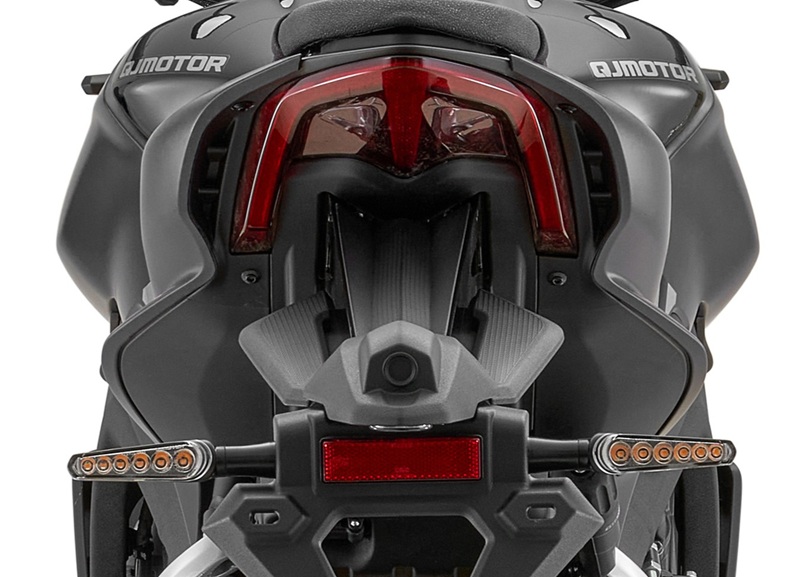Speciálně navržené zadní LED osvětlení navazuje na estetiku přední části a vytváří jedinečnou identitu supersportovních motocyklů od QJMOTOR. Kromě předního a koncového světla jsou samozřejmě i blinkry a další osvětlení Full LED. Design celé zadní části je též originální a neokoukaný. Tenká, minimalistická podsedlovka s výraznými liniemi a aerodynamickými průduchy dává vyniknout ladným tvarům SRK 800 a poukazuje na silný charakter tohoto supernakedu.