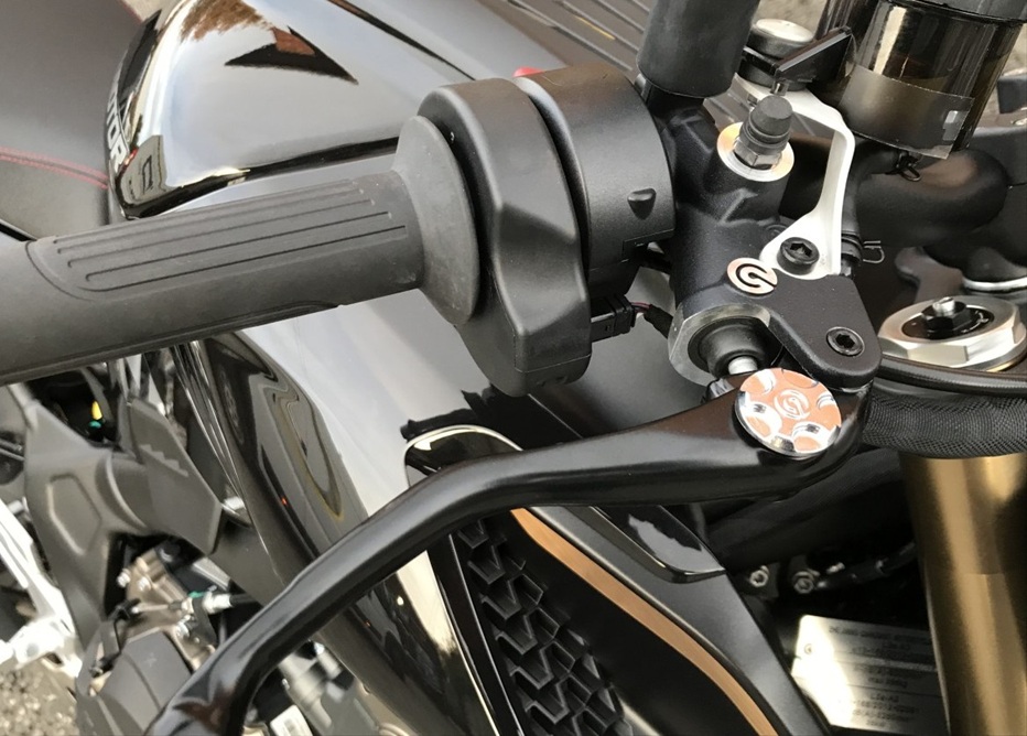 Celý brzdový systém SRK 800 se skládá z opravdu kvalitních komponentů. Radiální brzdové třmeny Brembo skvěle doplňuje i radiální brzdová pumpa. Hlavní rozdíl mezi radiální a axiální pumpou je směr pohybu pístku. Radiální pístek se pohybuje ve stejném směru jako brzdová páčka, tedy kolmo (nebo velmi blízko kolmému směru) k řídítku. Je tedy pochopitelné, že získáte lepší cit při brzdění, když se páčka pohybuje ve stejném směru jako pístek. To je hlavní výhoda radiální konstrukce. Brzdění je tak citlivější a lépe dávkovatelné. Samozřejmostí jsou i nastavitelné páčky spojky a brzdy pro co nejlepší ovladatelnost SRK 800.