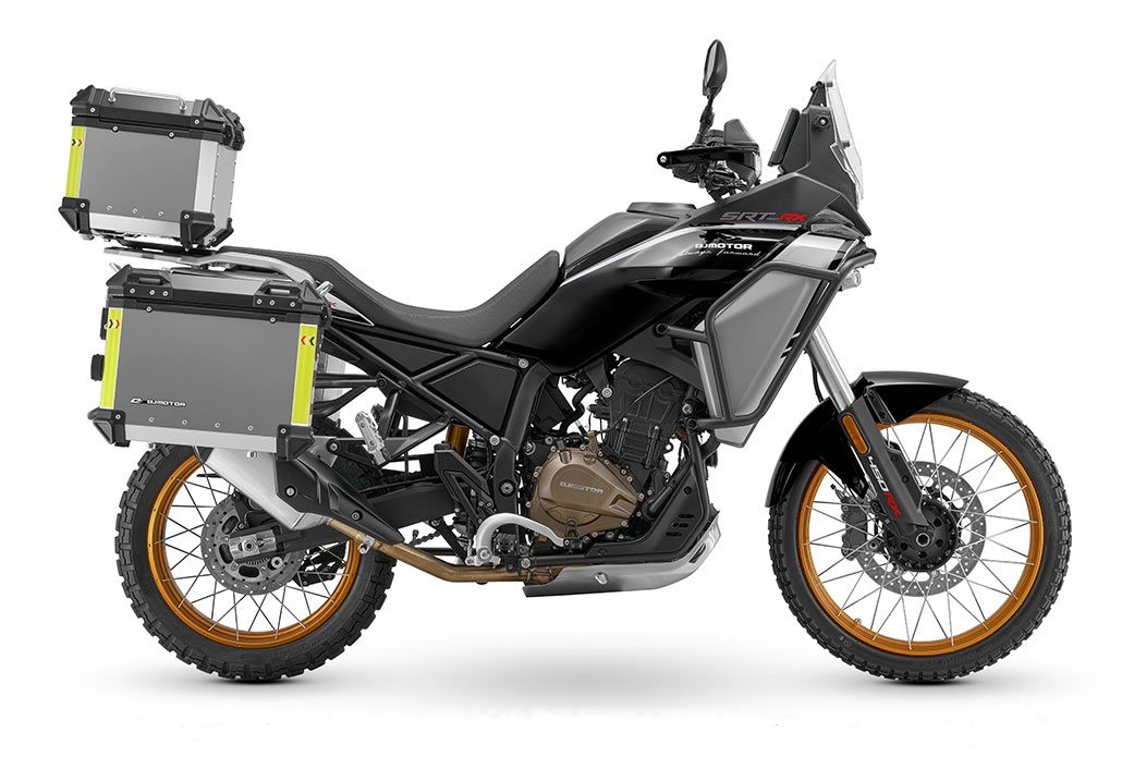 K SRT 450 RX dostanete zdarma též kvalitní originální sadu uzamykatelných hliníkových kufrů QJMOTOR. Horní kufr a boční kufry lze sejmout v několika jednoduchých krocích a nabízí velký úložný prostor pro každé dobrodružství. Horní kufr s úložným prostorem 45 litrů a dva boční kufry o objemu 37 a 30 litrů nabízejí dostatek místa pro Vaše cestovní vybavení. Kufry jsou uvnitř polstrované a mají praktické vniřní kapsy.