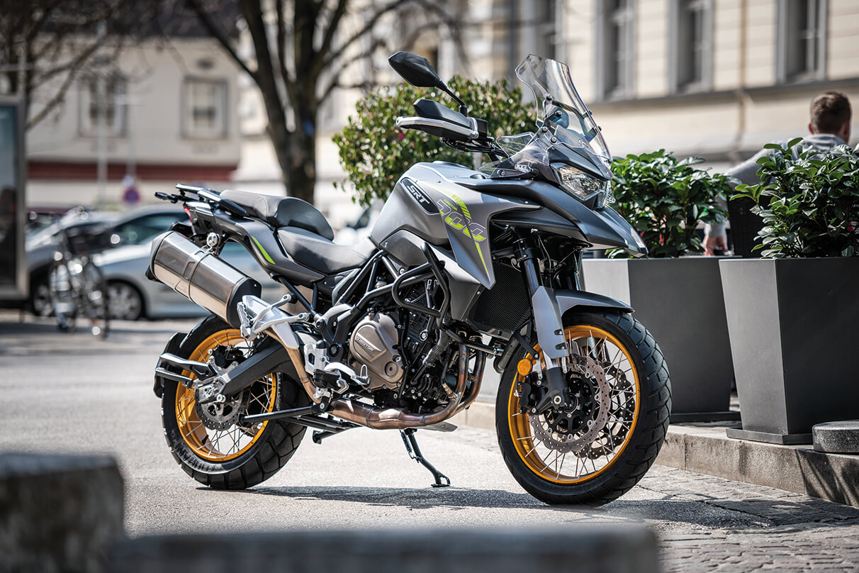 SRT 700 X je standardně vybaven drátěnými koly v enduro stylu a má 19ti palcové přední kolo. Bezdušové pneumatiky Metzeler s hrubším vzorkem jsou ideální i pro výlety do nezpevněného terénu.