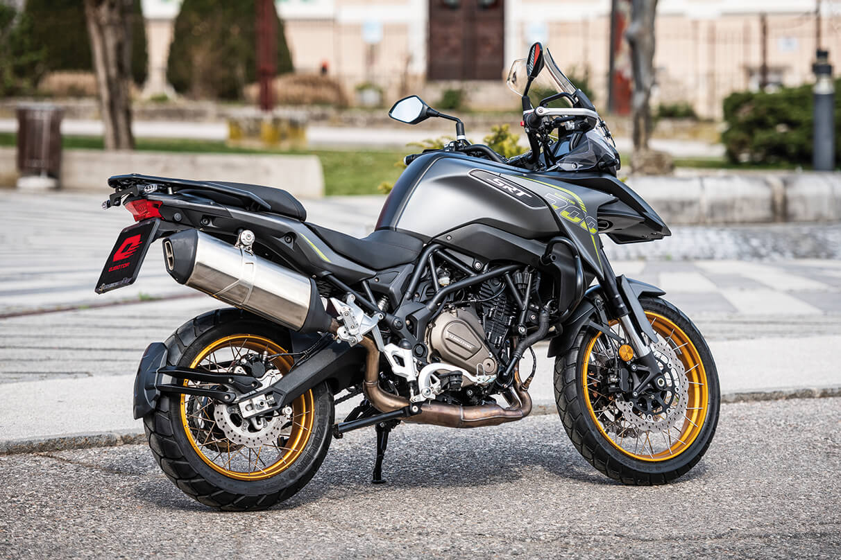 U SRT 700 X zajišťuje výfukový systém 2 do 1 s vysoko umístěným zadním tlumičem výfuku charakteristický enduro vzhled motocyklu a velkou světlou výšku pro výlety do nezpevněného terénu.