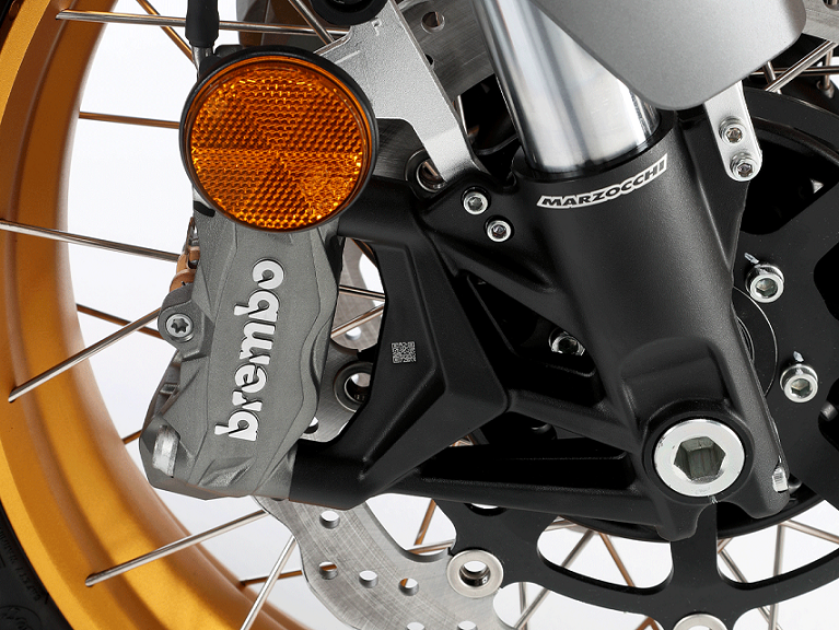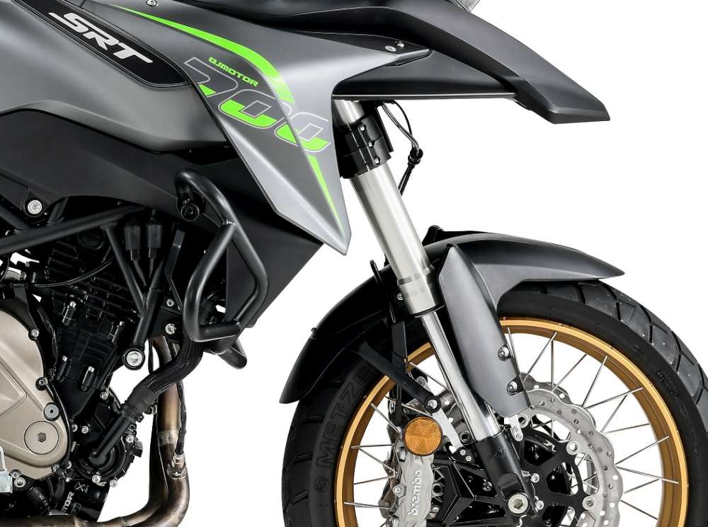 Podvozek s velkými zdvihy tlumičů je vybaven opravdu kvalitními vidlicemi a zadním centrálním tlumičem od renomované značky Marzocchi, kterou možná znáte z některých evropských motocyklů Ducati nebo KTM. Přední obrácená (upside-down) vidlice i zadní centrální tlumič, okamžitě a přesně reagují na aktuální nerovnosti terénu a zajištují snadnou a precizní ovladatelnost. SRT 700 X Vás mile překvapí svými jízdními vlastnostmi při jízděna lehko v jednom, tak i s bagáží a se spolujezdcem.