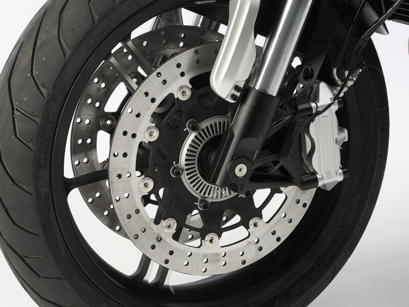 Výkonný brzdový systém se systémem ABS vpředu i vzadu nabízí bezpečné zastavení v každé jízdní situaci. Zdvojené přední brzdové kotouče o průměru 320 mm s radiálně montovanými brzdovými třmeny zajišťují přesně dávkovanou brzdnou sílu.