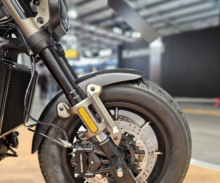 Přední brzdy s ABS: 2x radiální kotoučová brzda 300 mm / ABS