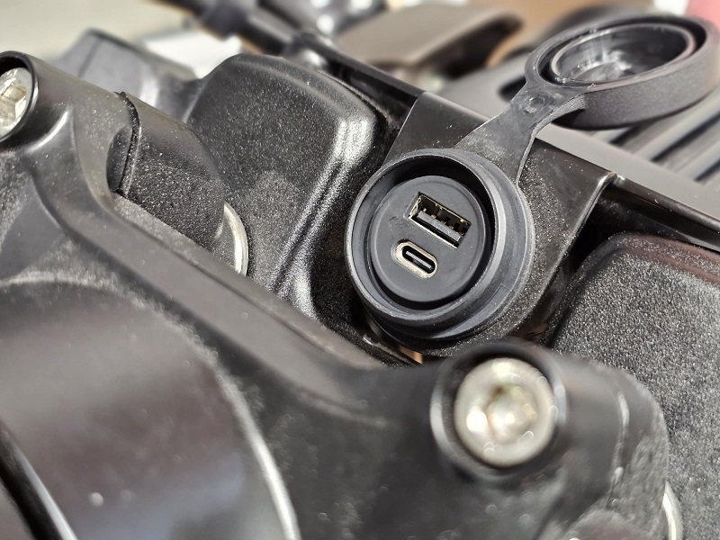 V kokpitu je vedle LCD panelu integrována i zásuvka USB-A a USB-C! Můžete skrz ně nabíjet například mobilní telefon, nebo zapojit navigaci. USB zásuvky mají samozřejmě voděodolnolu gumovou krytku.