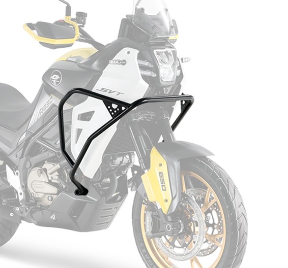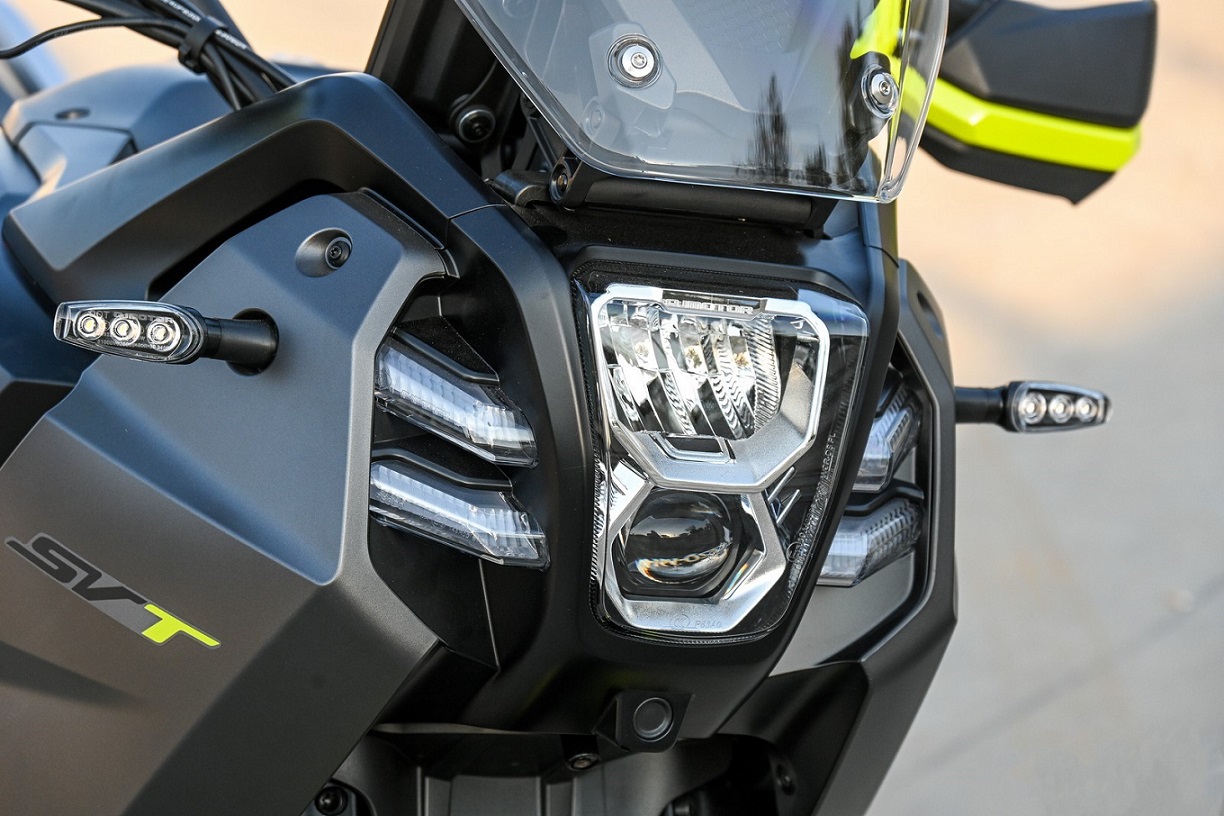 Ergonomická přední část se u SVT 650 X vyznačuje vertikálním umístěním dvou LED světlometů a nápadným designem kapotáže, který udržuje siluetu motocyklu úzkou a zároveň nabízí vynikající ochranu jezdce díky snadno nastavitelnému plexisklu, které je součástí základní výbavy. Řídítka s variabilním průřezem vytvářejí přirozený úhel rukou jezdce a tak i pohodlnou jízdní pozici.