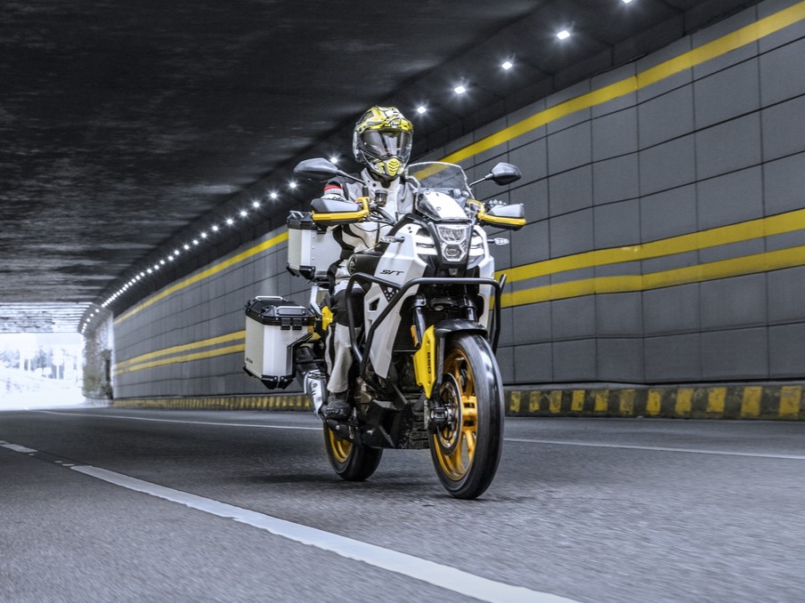 Jak už je u QJMotor zvykem, tak i SVT 650 X koupíte s bohatou cestovní výbavou - jmenujme například vyhřívané gripy, sedadlo řidiče, zesílené originální blástry, USB zásuvku a barevný 7mi placový TFT přístrojový panel s indikací tlaků v obou pneumatikách! To vše skvěle doplňuje parádní véčkový motor, kvalitní podvozek s velkými zdvihy. Samozřejmostí jsou brzdy Brembo a ABS od firmy Bosch.