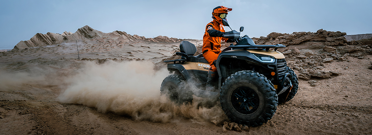 Segway AT10 – ultimátní čtyřkolka, posouvající hranice výkonu a dobrodružství! Motor s výkonem 97 koní zvládne zrychlení z 0 na 100 km/h za méně než 9 sekund a je navržen pro milovníky adrenalinové jízdy a náročného terénu.
