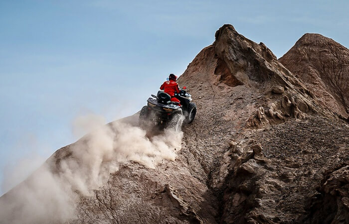 S čtyřtaktním motorem o objemu 999 cm3 s vynikající stoupavostí čtyřkolky si poradíte i s prudším kopcem.