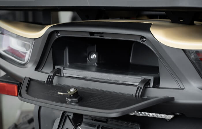 Na výletě i při práci je dostatek úložných prostorů prostě k nezaplacení. Příruční schránka před sedadlem pojme vše, chcete mít po ruce. Velký zadní box je navíc uzamykatelný.