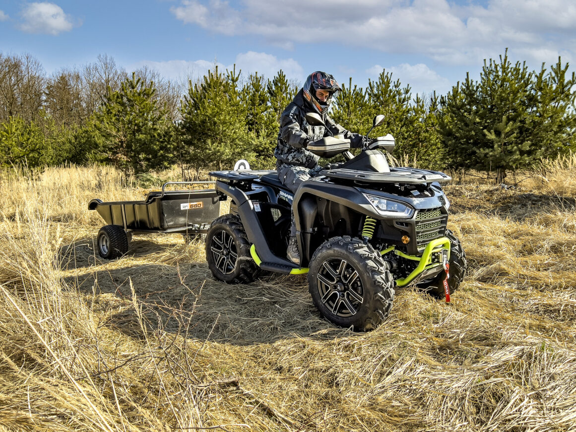 Nová užitková / pracovně-rekreační čtyřkolka s prodlouženým podvozkem, elektrický posilovač řízení EPS, kapalinou chlazený jednoválec 499 cm3 EFI o výkonu 39hp, automatická převodovka P/R/N/L/H, brzdění motorem, pohon 4x4, dvojitá A-ramena vpředu / dvojitá A-ramena se stabilizátorem vzadu, hydraulické tlumiče s progresivními pružinami, přední a zadní ochranné rámy, tažné zařízení, el. naviják 2500 lbs, kovové nosiče vpředu a vzadu, Full-LED osvětlení, prodloužené sedadlo spolujezdce s opěrkou zad, 12V zásuvka, 12" hliníkové disky, 25" pneu, ochranné kryty rukojetí, homologace Euro5+