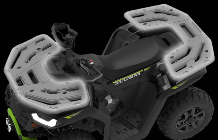 Díky robustním kompozitním nosičům je Segway AT5 vždy připraven přivézt zásoby, naložit výbavu pro vaše dobrodružství. Doplnění o systémové boxy poskytne další přepravní kapacitu a vaše věci budou dokonale chráněné.