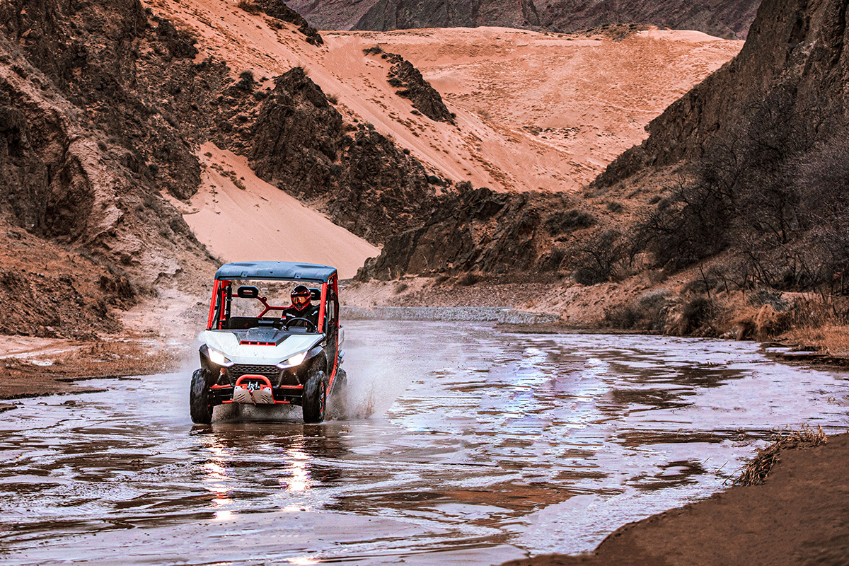 Elektrický naviják 3500 lbs, inteligentní elektrický posilovač řízení, TFT digitální přístrojová deska, Smart Commanding System (TBOX), tažné zařízení, nastavitelný volant, anatomicky tvarovaná sedadla s hlavovou opěrkou, tříbodové pásy, přední ochranný rám, zadní ochranný rám, bezpečnostní sítě na straně řidiče i spolujezdce, pevná střecha, velká sklopná korba, 14" hliníkové disky, poloviční čelní plexi.