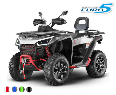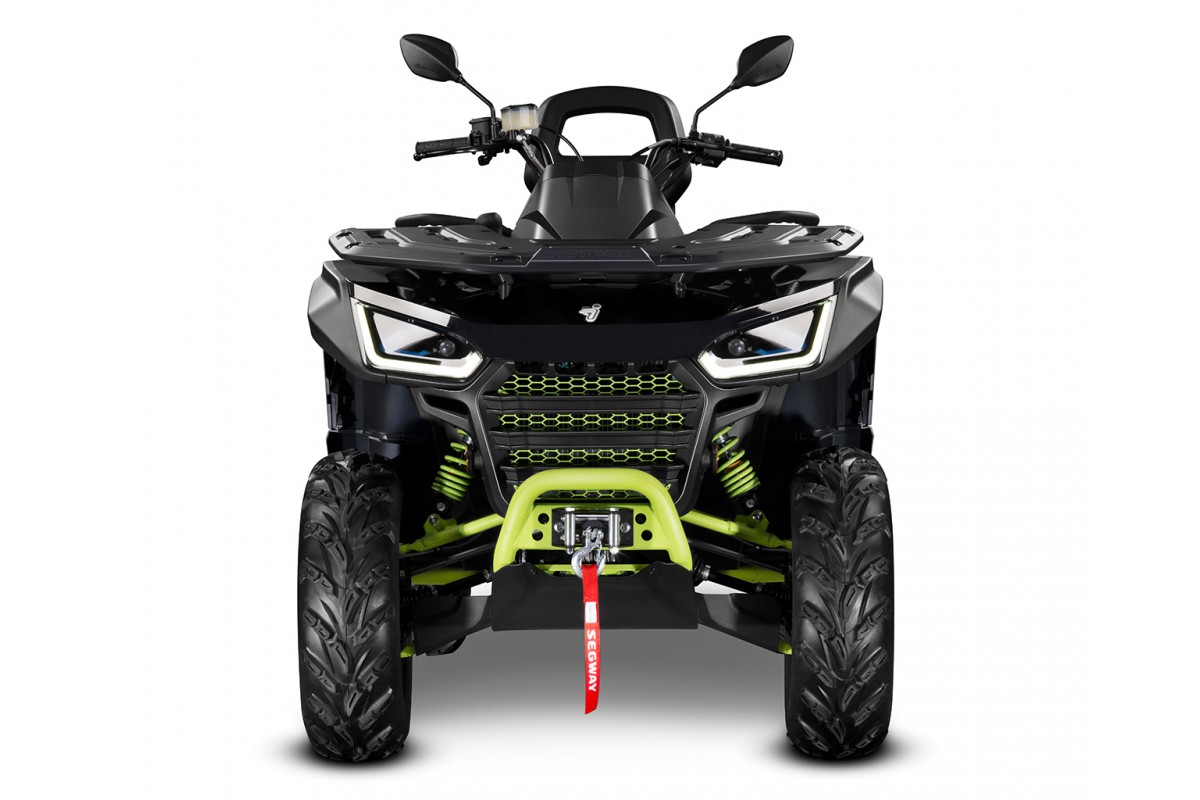 Elektrický posilovač řízení, elektrický naviják, sedadlo s opěrkou zad, tažné zařízení, kompozitní nosiče vpředu i vzadu, digitální multifunkční displej, Full-LED osvětlení, přední ochranný rám, zadní ochranný rám, boční ochranné rámy, 14" hliníkové disky, nastavitelné pérování s progresivně vinutými pružinami, ochranné kryty rukojetí.