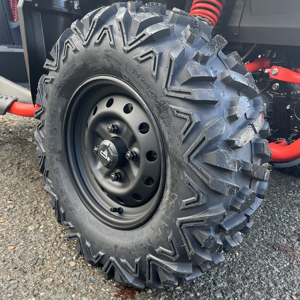 Elektrický naviják, sedadlo s opěrkou zad, tažné zařízení, ocelové nosiče vpředu i vzadu, digitální multifunkční displej, přední ochranný rám, zadní ochranný rám, boční ochranné rámy, 12" ocelové disky, nastavitelné pérování s progresivně vinutými pružinami, ochranné kryty rukojet