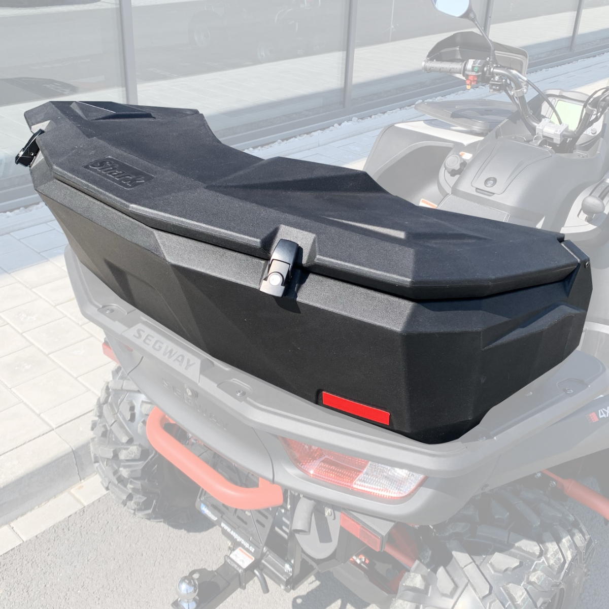 Uzamykatelný zadní box pro užitkové čtyřkolky. Z vysoce kvalitního nárazuodolného polyetylénu. Tento box pojme vše, co potřebujete pro cestování, práci, rybaření nebo lov. Vnitřní prostor o objemu 105 litrů. Víko je uzamykatelné na dvě kovové přezky