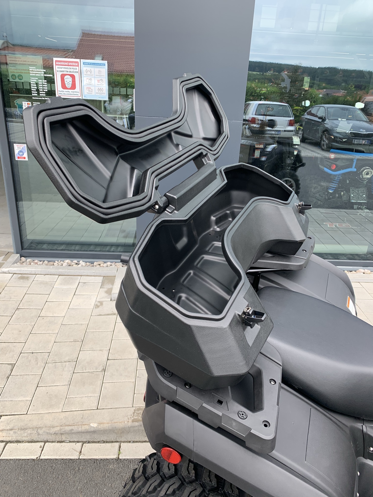 Uzamykatelný zadní box pro užitkové čtyřkolky. Z vysoce kvalitního nárazuodolného polyetylénu. Tento box pojme vše, co potřebujete pro cestování, práci, rybaření nebo lov. Vnitřní prostor o objemu 92 litrů. Víko je uzamykatelné na dvě kovové přezky
