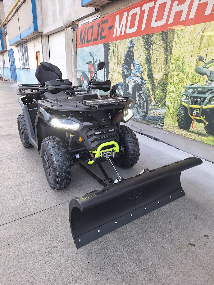 Odolná odpružená radlice pro odklízení sněhu a dalších sypkých materiálů jako je štěrk, písek, uhlí, mulč atd. Pro všechny typy čtyřkolek a UTV. Robustní mrazuodolná polyetylenová konstrukce s výztužnými žebry. Inovativní radlice SHARK mají vyšší životnost než radlice ocelové, jsou provozně tišší a šetrnější ke stahované ploše, nerezaví a jsou také šetrnější ke čtyřkolce / UTV - i za nízkých teplot vykazují mírnou flexi, která zmenšuje rázové namáhání rámu stroje. Radlice se dodává kompletně sestavená s rychloupínacím adaptérem