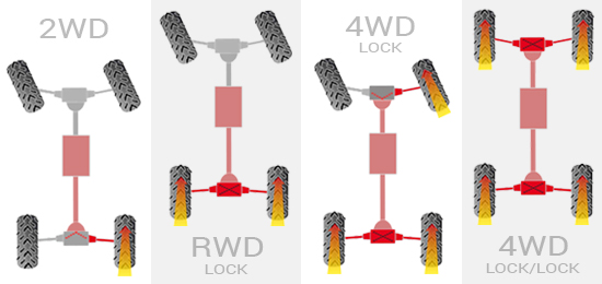 Pohon 4x4 se dvěma elektricky uzamykatelnými diferenciály přináší optimální trakci ve všech podmínkách. V těžkém terénu nebo při rychlé jízdě umožňuje optimálně nakonfigurovat pohon, takže vás nic nezaskočí. Výsledkem je vynikající průchodnost terénem, příjemná jízda a snadné řízení.