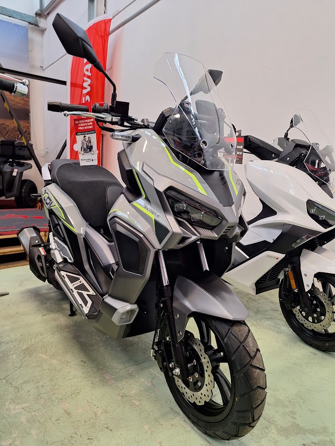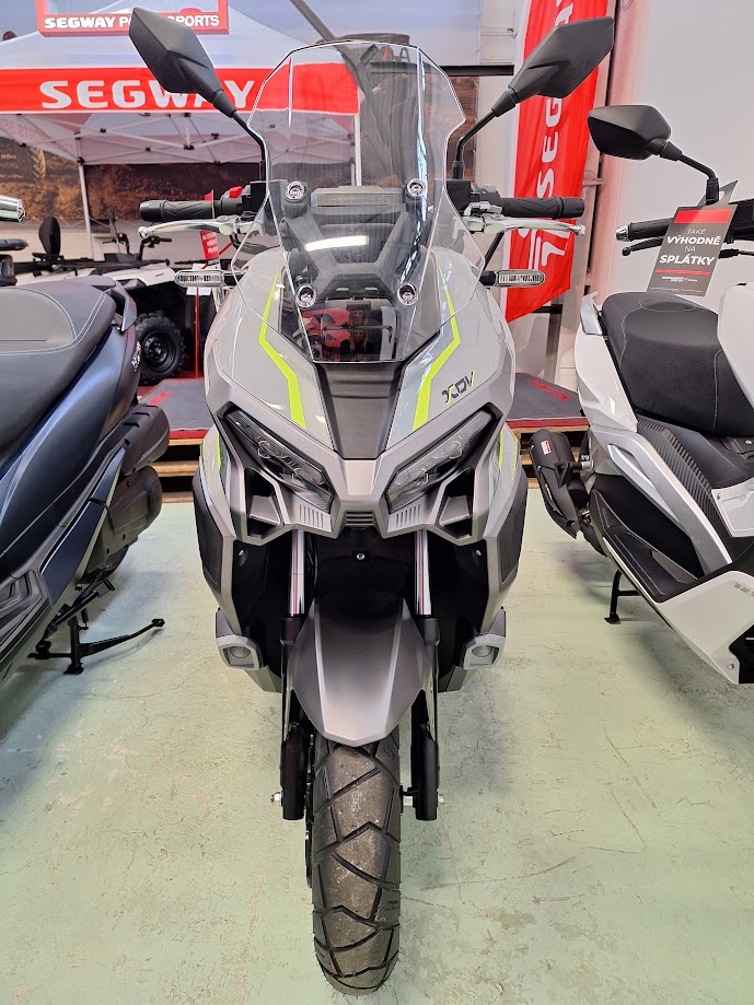 Tento nový model pořídíte s prémiovou výbavu, jako jsou LED osvětlením, bezklíčovým startováním. O lepší stabilitu a ovladatelnost se postará zesílená přední vidlice upside-down spolu s duálními zadními tlumiči, výkonné radiální kotoučové brzdy s dvoukolovým ABS. Motor s vodním chlazením o výkonu 8,5 kW s plynulým převodem CVT variátorem. XDV má přípravu na doplňkovou montáž nosiče se sadou tří hliníkových kufrů ve stylu GS Adventure.
